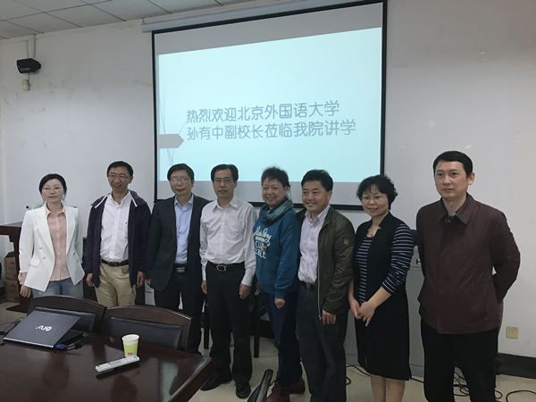 (通讯员:赵凡)2017年4月28日上午,北京外国语大学副校长孙有中教授为我院师生带来了题为“‘双一流’视阈下外语学科发展与建设”的精彩学术报告。外国语学院院长王革教授担任本次讲座的主持人,外院党政班子全体成员、各学科带头人和中青年骨干教师出席了本次讲座。