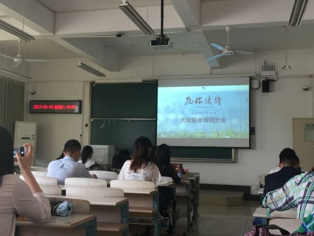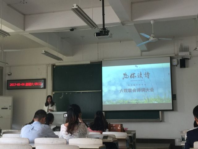 本次“为你读诗”六院联合诗词大会由信息安全与工程学院、外国语学院、马克思主义学院、新闻与文化传播学院、经济学院和法律硕士教育中心联合主办。旨在让同学们停下匆忙的脚步,感受诗歌带来的宁静悠远的蕴味,让灵魂在闹市中获得片刻的自由,以诗会友、交流分享。大会主持人由新闻与文化传播学院陈宛茹担任,本次诗词大会评委是外国语学院研究生会副主席吴琼、经济学院研究生会主席匡永芳、马克思主义学院研究生会副主席毕金杰和信息安全与工程学院研究生会副主席谢春燕。