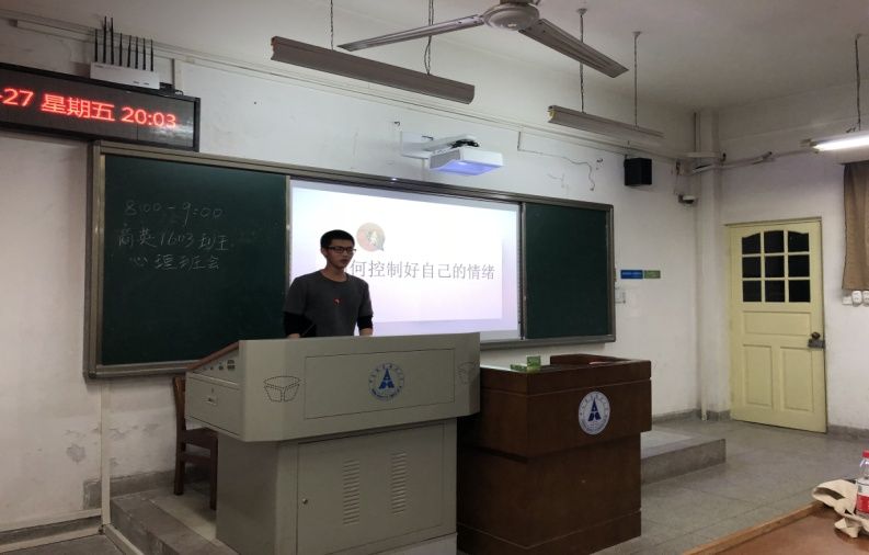 (通讯员 张驰 刘琳)4月27日晚,外国语学院商务英语1603班在文澜楼203教室开展了以“如何控制好自己的情绪”为主题的班会,心理委员张驰和刘琳共同主持和记录,班级全体同学参加。