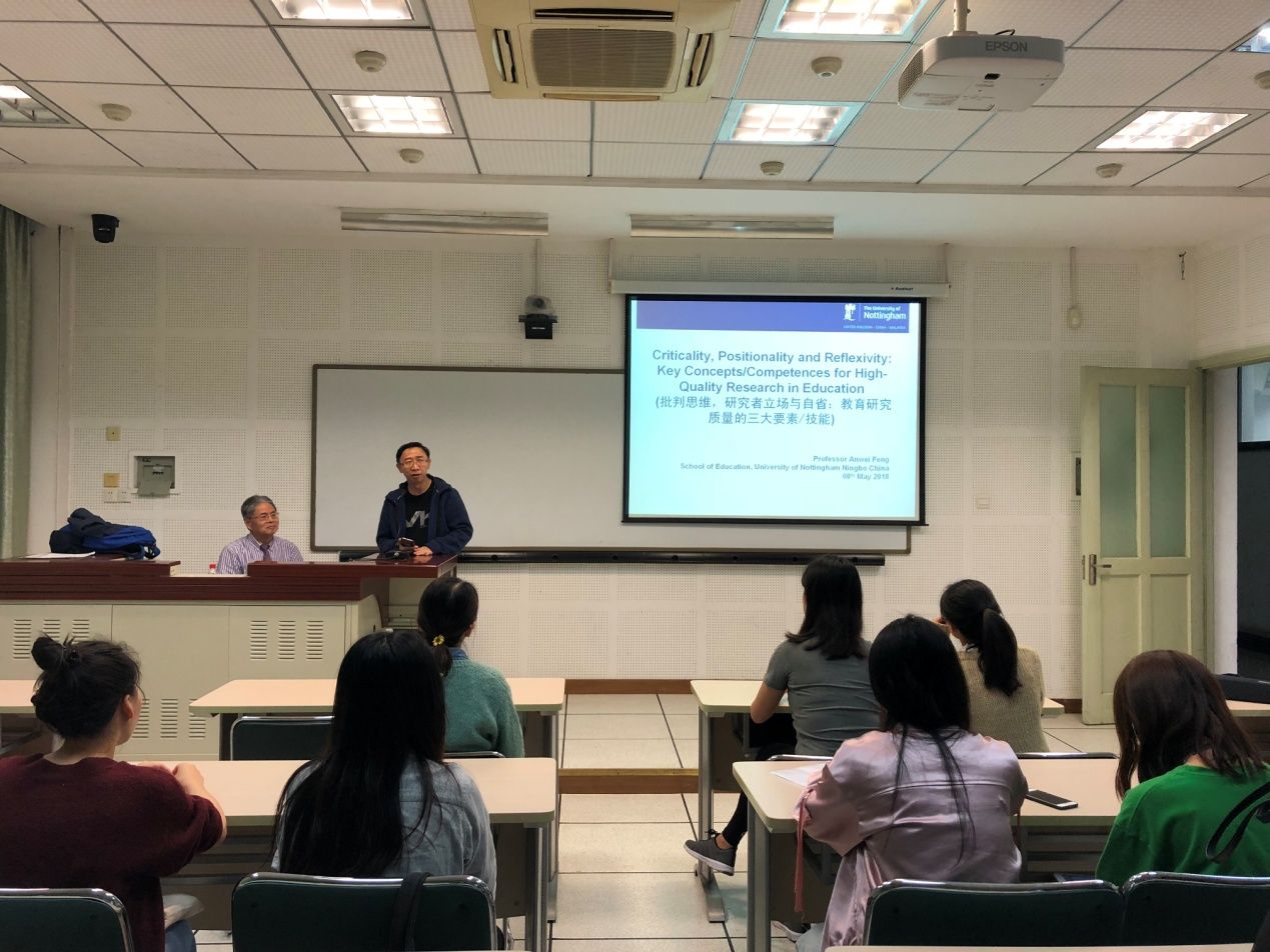 2018年5月8日下午4:00,我院学术校庆“名家讲坛”第五场学术讲座在文波楼语音210教室举行。宁波诺丁汉大学教育学院前院长,教育学院研究主任冯安伟教授做客中南财经政法大学外国语学院,开展了题为“批判思维,研究者立场与自省:教育研究质量的三大要素”的学术讲座。讲座由外国语学院院长王革教授主持,学院教师以及研究生一起聆听了本次讲座,并进行了积极的交流互动。