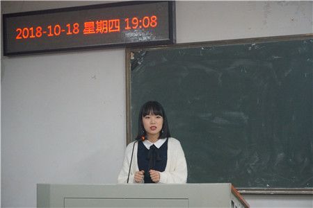 首先上台发言的是保研北京外国语学院会议口译方向的方致远,她先后参加了外交学院与中国政法的夏令营,并且获得了北外、上外、浙大的预推免,但她最终择了北外会口。她在讲话中多次强调“基础不牢,地动山摇”,同时也谈到了“听力、口语、读、写”在外语学习中的实践方法。最后以“道理很简单,坚持也不难”作为给同学们的劝勉结束了自己的发言。
