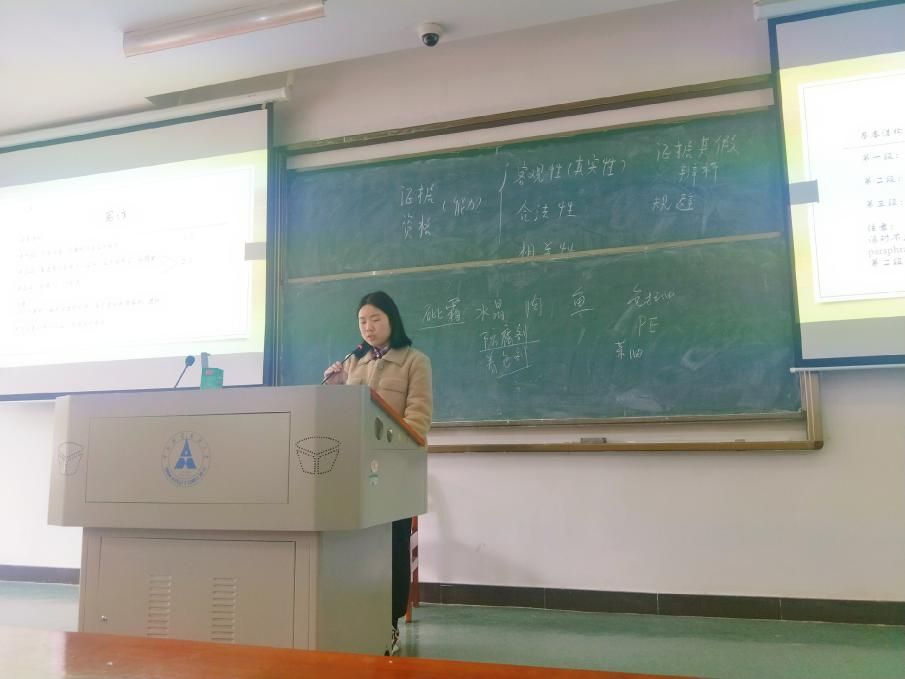 接下来,徐晨师姐的经验分享也很生动实用。她介绍了本班同学的专四考试情况,并且分享自己学习英语的方法。徐晨师姐在学习过程当中很善于向其他的师兄师姐们虚心求教,结识了非常优秀的朋友,也讲述了他们得学习方法和体会,正所谓:三人行必有我师焉。