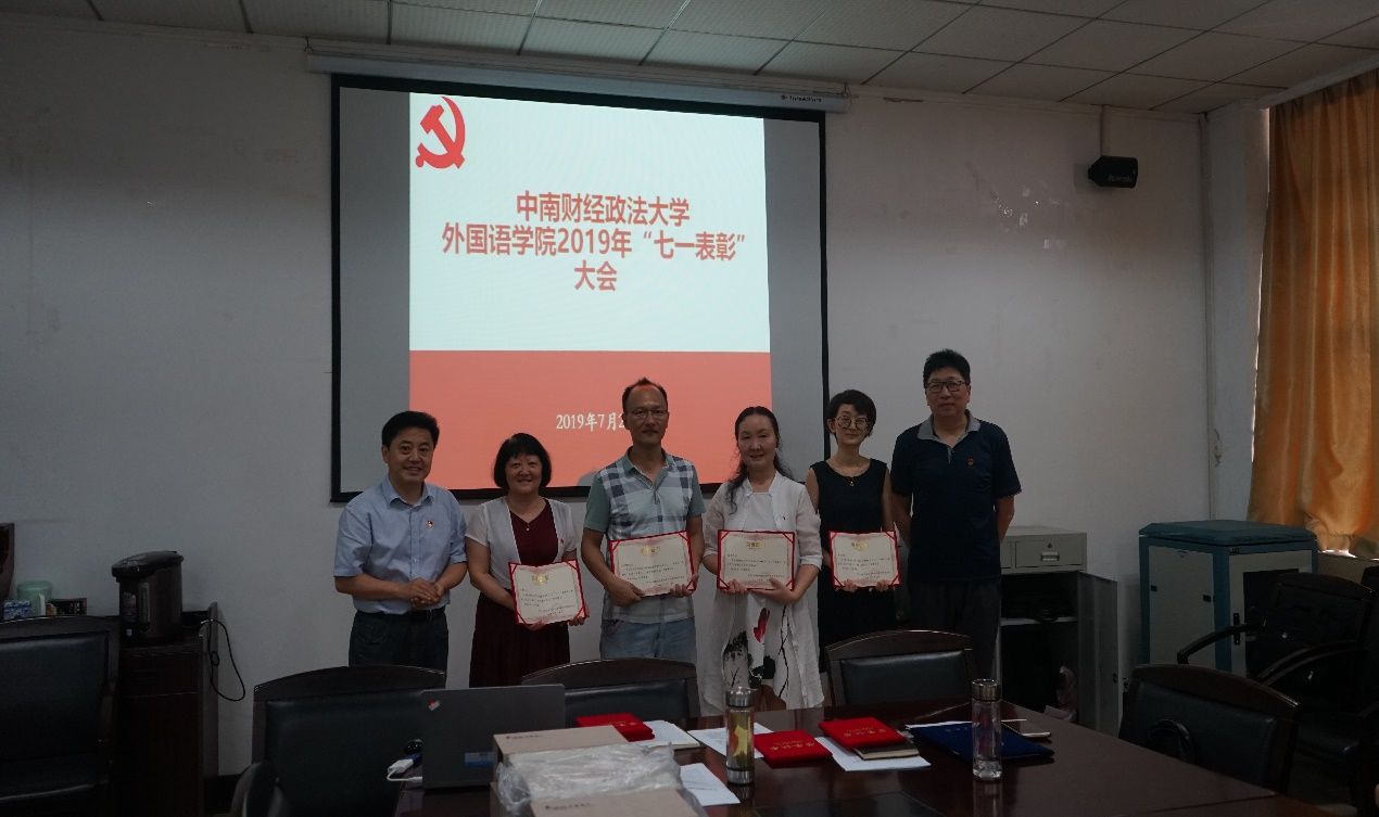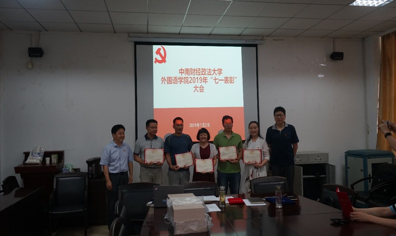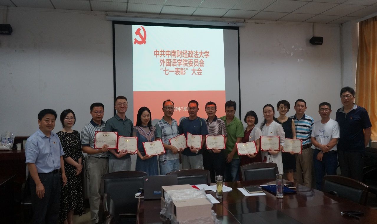 会议伊始,院党委书记余启军代表学院党委宣读表彰决定。授予外国语学院大学英语四五六党支部、外国语学院英语系和应用英语系党支部2个教师党支部,外国语学院2018级研究生党支部、外国语学院本科生党支部2个学生党支部“先进基层党组织”荣誉称号;授予冯兵、关绮、马书东、戴斐、周敏、张诗萌6名同志“优秀共产党员”荣誉称号;授予袁园、关绮、李宏顺、戴斐4名党支部书记“优秀‘双带头人’教师党支部书记”荣誉称号;授予袁经林同志“优秀党务工作者”荣誉称号。学院党委书记余启军、院长蔡圣勤先后为受到表彰的先进集体代表和个人颁发了荣誉证书和奖品。