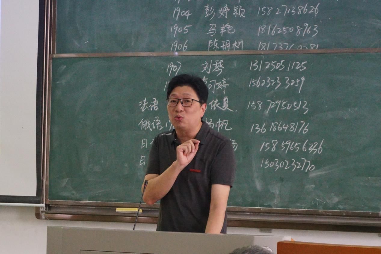 下午15时,外国语学院2019级新生家长见面会在首义校区文津楼401教室举行。外国语学院院长蔡圣勤教授、院党委书记余启军教授、副书记伍施乐老师以及院学生办公室全体辅导员出席此次见面会。