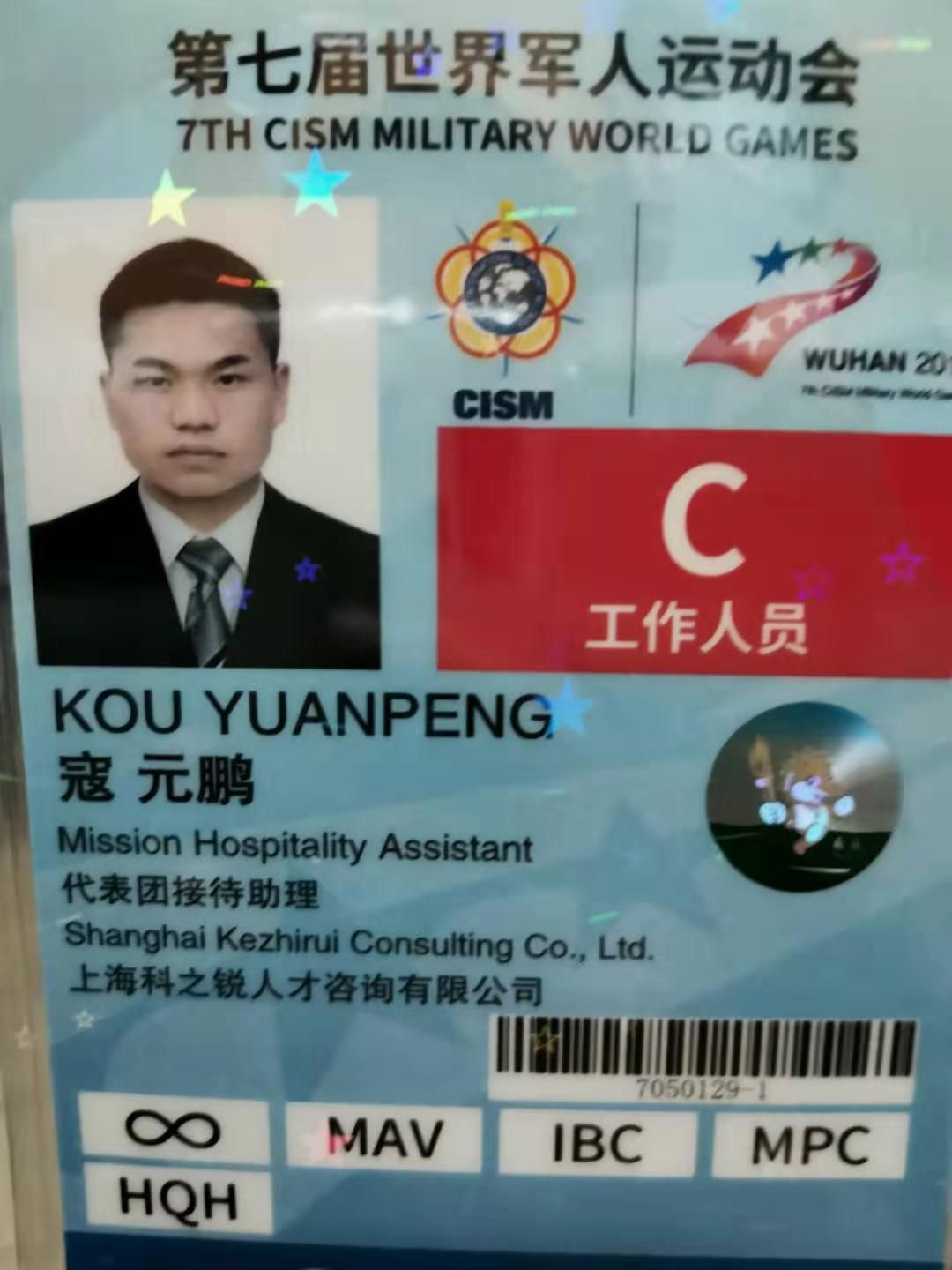 10月27日晚,第七届世界军人运动会在武汉体育中心成功闭幕。从开幕到闭幕,短短的十天时间里,我们领略了世界军人奋力拼搏的英姿,感受到为运动员呐喊助威时心潮澎湃的心情,见证了人民与人民、国与国之间携手并进,共展友谊的光芒。作为代表团助理的我们,不仅代表着国家的形象,更是国与国之间沟通的桥梁。我们与代表团成员间的友好相处象征着国与国之间的良好关系,体现了中国以开放的姿态与各国友好建交、和平相处。军运会虽然已经落幕,但这段属于我们与各国代表团的共同记忆永远不会褪色,此次军运会给我们带来的收获必将让我们获益终生。