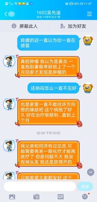 20203月,吴先溢终于完成了初稿及修订工作,才安心与家人一道从福建三明赶往福州求医。在经过数日的隔离之后却得知,因为疫情错过了最佳治疗时机,吴先溢只能再做一期的化疗并视后续康复情况进行放疗清除肿瘤术后残余。治疗一直持续到了422日,吴先溢争取治疗间隙的所有时间,与指导教师探讨论文的修改方案,在医院附近的简陋的短租房中,完成了论文的查重和定稿。430日,吴先溢终于和同学一起参加了毕业论文线上答辩,由于治疗的原因,他只能全程带着帽子,但在答辩老师宣布答辩结果的那一刻,吴先溢心中的感激与激动之情无以言表:他十分感谢指导老师一直的敦促、劝慰和鼓励,感谢答辩老师的理解和包容,感谢学院领导和辅导员刘琪老师的关心和帮助。他表示:“病痛人生道路上的一次波折,带来了巨大的心理创伤,但也让自己更坚定了对未来治疗道路和生活的信心。”