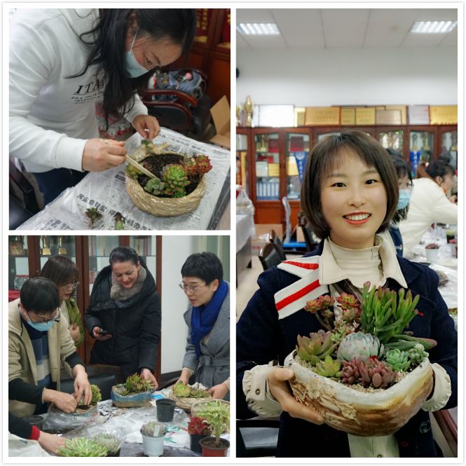 院网讯(通讯员 吴章凡)为丰富教职工精神文化生活,感受艺术之美,体验创造乐趣,12月10日下午,外国语学院工会在文波楼402室举办了“多肉植物百科活动”。