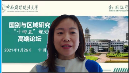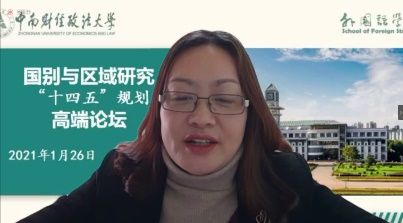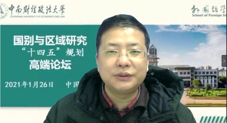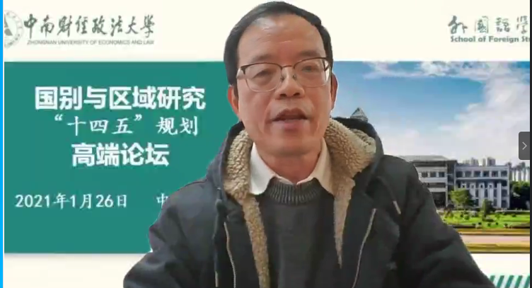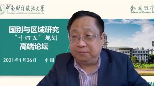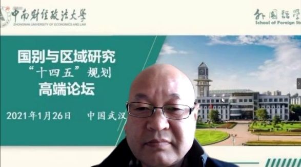 院网讯(通讯员 谢梦雅 罗莎)2021年1月26日,“中南财经政法大学国别与区域研究十四五规划高端论坛”于云端腾讯会议上召开。本次论坛由中南财经政法大学外国语学院主办,邀请了行内五位知名专家作大会主旨发言。