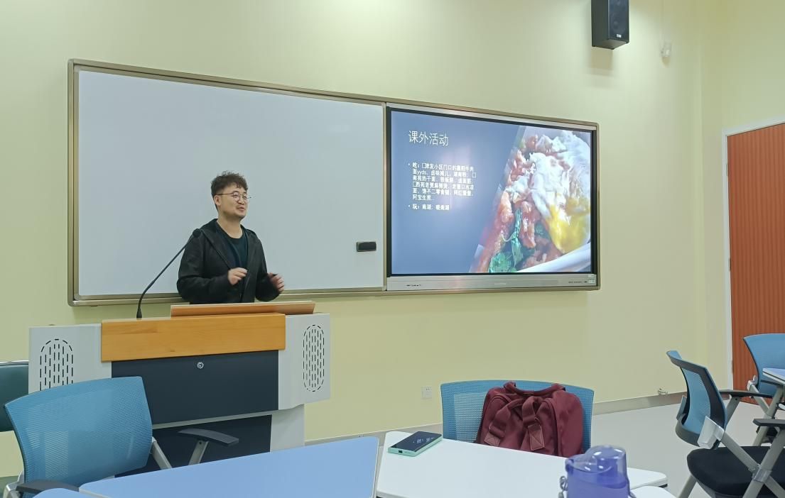 么文浩师兄提到上的第一节课谢群教授就提出“要把英语学成自己母语”的要求,这一要求成为他苦练语言基本功的动力。之后他谈到了高效学习的方法:课前预习,课堂学习,以及课后练习。除了自己在课堂上学习到的理论之外还应该课下多实践实操,真正地把书本上的东西变成自己的财富。分享完经验之后,师兄与大家一起讨论学习方法,同学们纷纷提出自己在学习中所遇到的困惑与问题,师兄便耐心细致地一一做出解答。