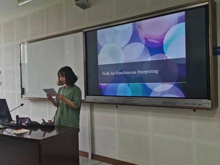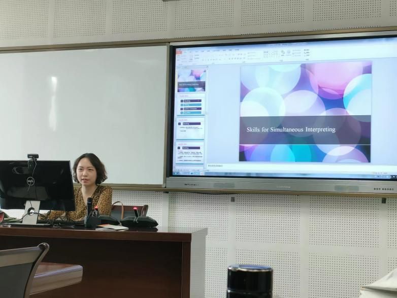 (通讯员:肖颖 梁嘉琪 陈恬)2022年5月6日,为了帮助同学们培养专业素养,强化翻译专业技能,翻译硕士(MTI)授课教师崔灿老师以“口译中的同传技巧”为主题,在文波楼同传教室与英语口译2021级硕士研究生一起开展了口译实践活动。同学们先对中英文音频进行同传翻译,而后大家一起讨论在没有系统学习同传技巧时出现的问题;随后崔灿老师就同传的基本原则和技巧进行讲解。本次活动的目的,是为帮助同学们打好同传基础,为之后的口译考试和实践做准备。
