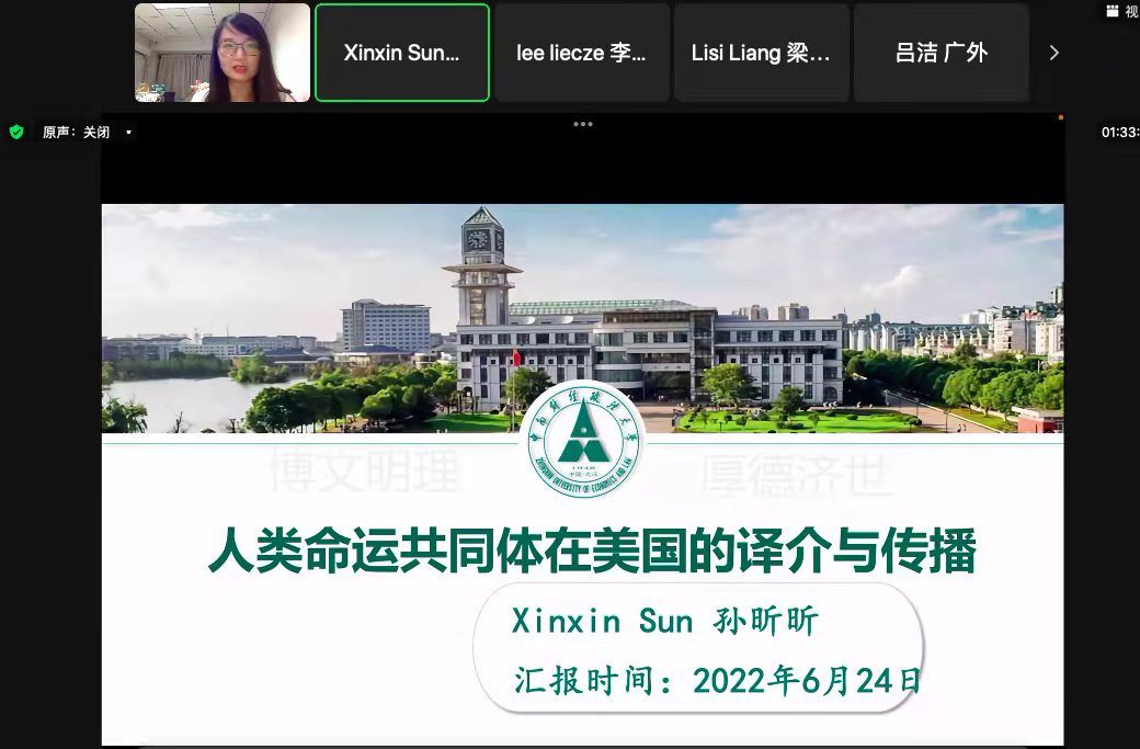 本届新媒体翻译研究国际学术论坛由华中农业大学和湖北省翻译工作者协会联合主办,大家聚焦新媒体试听翻译理论与实践研究,共同推动翻译学科建设,讲好中国故事、提升中国国际传播力。论坛共设置2组主旨发言及8个分会场。英国伦敦大学Jorge Díaz-Cintas教授,伦敦大学Rocío Baños副教授,西班牙庞培法布拉大学Patrick Zabalbeascoa教授,德国肯普滕大学Iris Guske副教授,意大利罗马大学Irene Ranzato教授,西班牙庞培法布拉大学Patrick Zabalbeascoa教授,上海外国语大学肖维青教授及中国传媒大学麻争旗教授等国内外知名学者做主旨发言。8个分会场汇集了海内外几十位学者/学生踊跃参与,分享各自在AVT领域最新成果、教学和研究成果。孙昕昕同学在以新媒体翻译与无障碍传播研究为主题的分论坛上宣读了“人类命运共同体在美国的译介和传播”的文章,并与其他参会的学者跨领域、多维度进行交流和探讨。