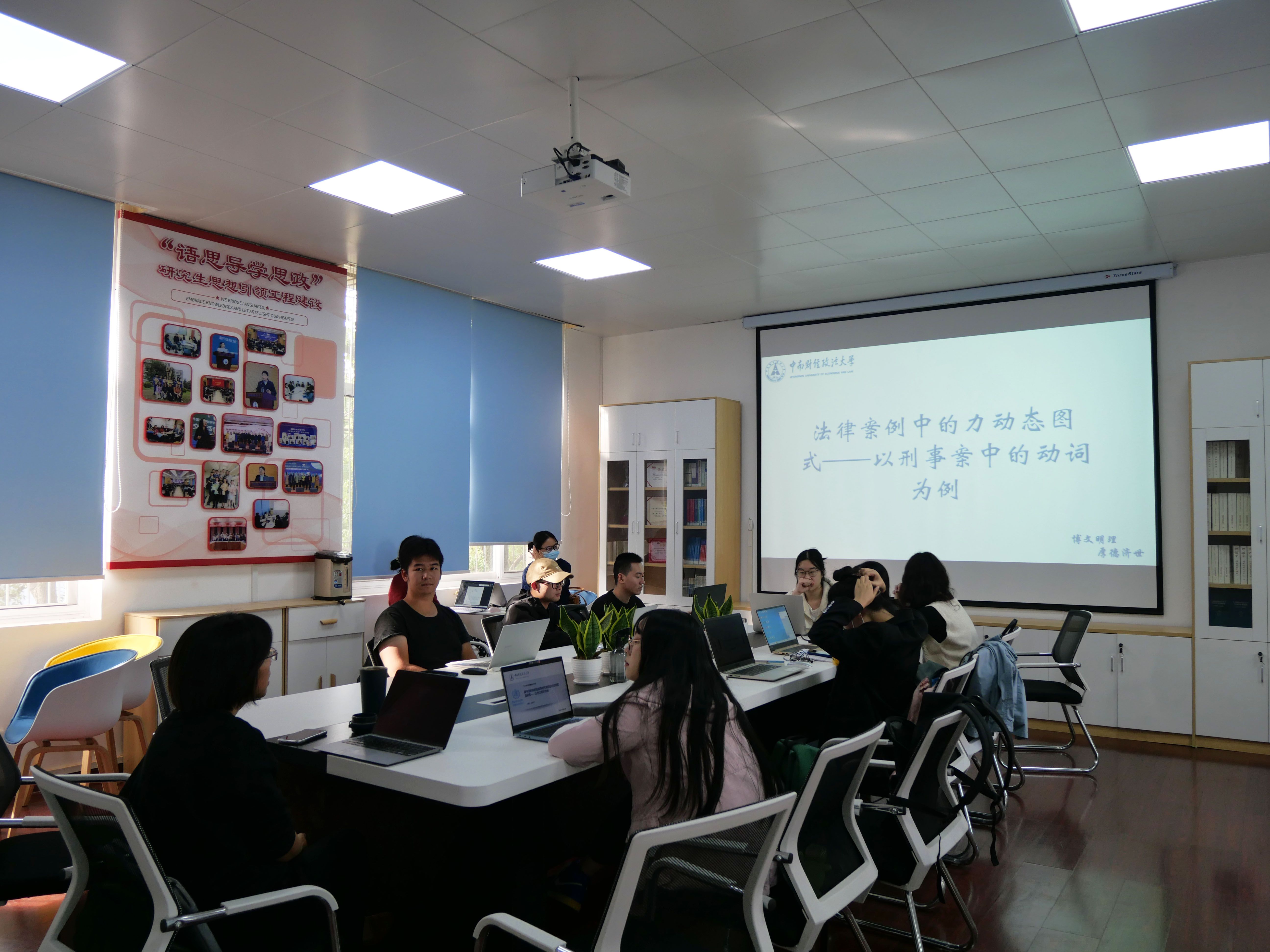 曾丽同学首先介绍了语言学家塔米(Talmy)提出的力动态理论,并论述了将其应用于认知语言学和法律语言学研究领域的可行性和创新性。根据前人基于这一理论对语言符号和言语行为等所作的分析和研究,她提出了构建刑事案例中的力动态模型的想法,即从认知视角分析刑事案中的动词。随后,有同学在讨论中指出,语料应该从权威性强的数据库(如Westlaw)中选取,并且在文本的细分类型上做出限定。还有同学提出,研究者是否具备足够的法律背景知识、能否对词汇中体现的主观层面要素展开分析,也是值得关注的问题。朱灵慧老师肯定了这一主题的新意,并针对语料收集、理论应用、研究意义、文本解读、研究范围提出了切实可行的建议。