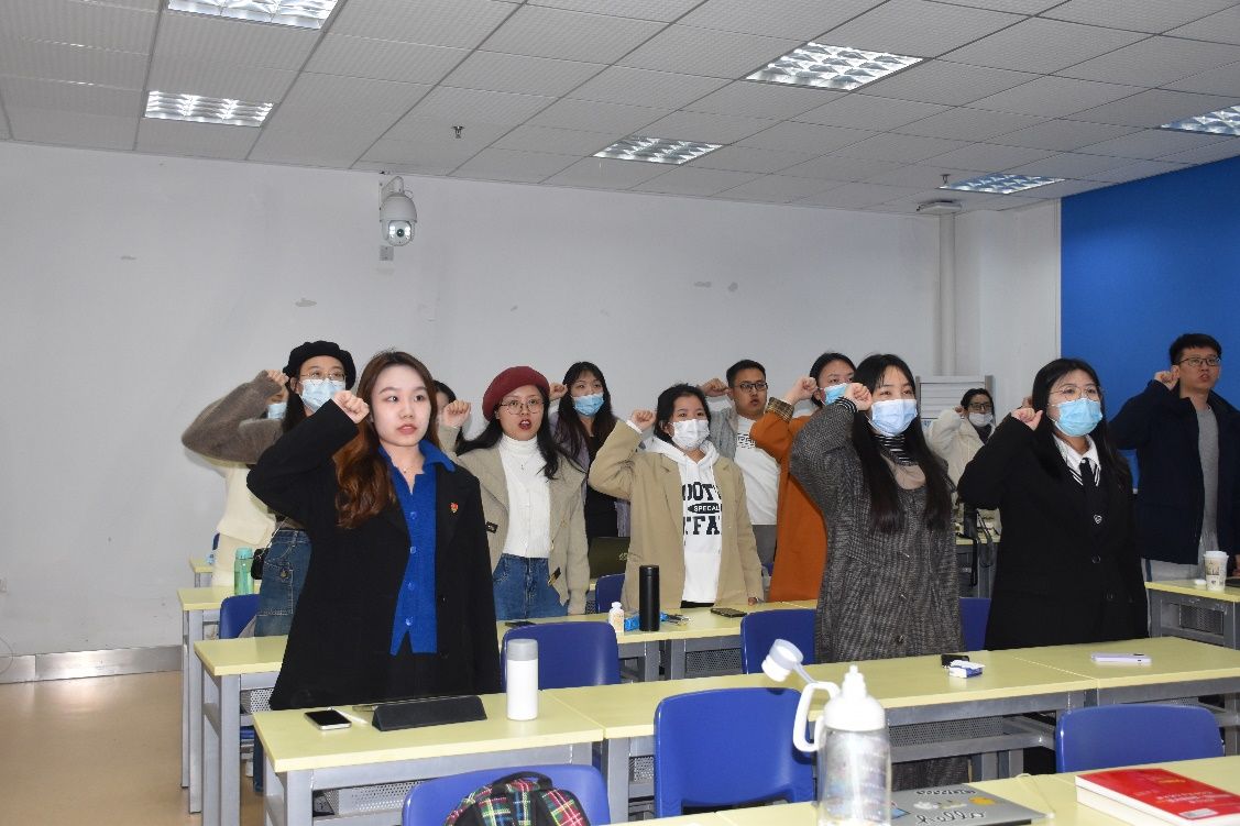 在马克思主义学院研究生第二党支部书记的带领下,全体党员重温入党誓词,在誓词中感悟党的初心和使命。铿锵有力的誓词,不仅代表着大家守正创新、勇毅前行的奋斗决心,更诠释了全体参会党员不忘初心、牢记使命的强烈信念。