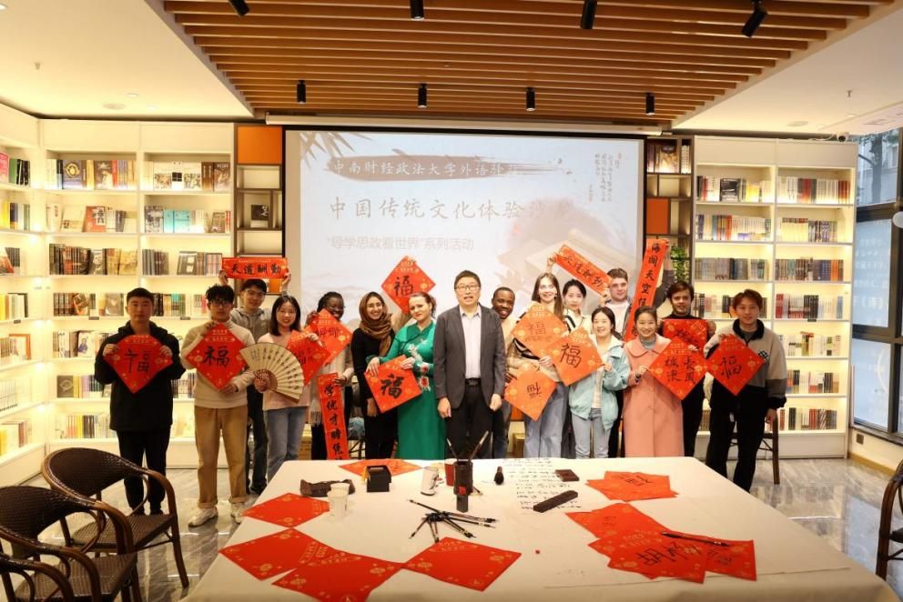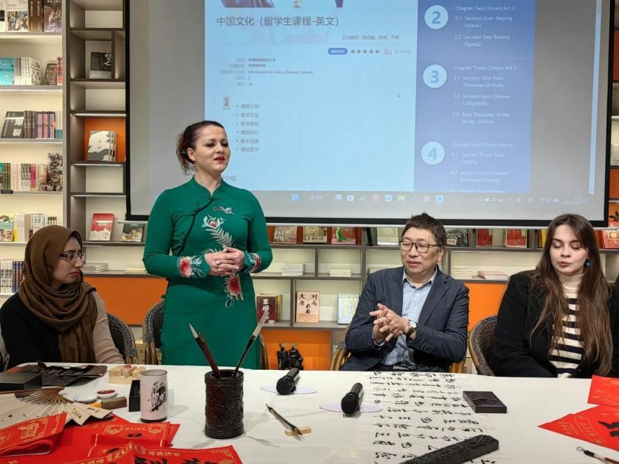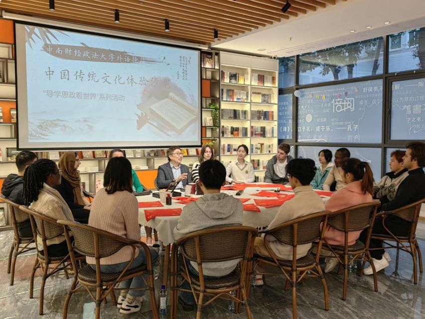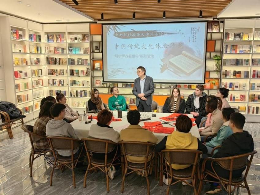(通讯员 黎佳 周岭)“遥知不是雪,为有暗香来,这句古诗描写的是什么花?”2月28日上午9时,环湖倍阅书店传来朗朗书声,外国语学院与国际教育学院联合举办了“导学思政同向行”——中国传统文化体验沙龙。本次沙龙邀请了外国语学院院长蔡圣勤教授主讲,中外研究生积极报名参加。外国语学院党委副书记王芹、国际教育学院副院长汪正君、外籍教师代表和两院辅导员参与本次沙龙。