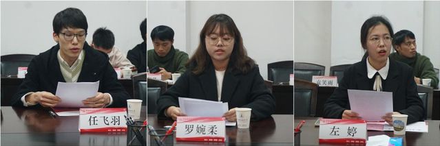 志愿服务优秀学生代表任飞羽、罗婉柔、左婷依次发言介绍自己参与志愿服务及团队相关情况。任飞羽详细介绍面向贵州省沿河县的伯乐笃行支教团外语支教和文旅外宣两个项目组组织架构、项目参与人员以及活动效果的情况;来自香港地区的罗婉柔将自己的志愿服务经历总结为志愿服务的参与者、志愿服务的组织者、港澳青年与内地情感纽带的一个连接者;左婷报告参与“美丽中国”志愿服务项目的事迹,详细介绍陪读导师、梦想导师和大山里的艺术馆三个活动。