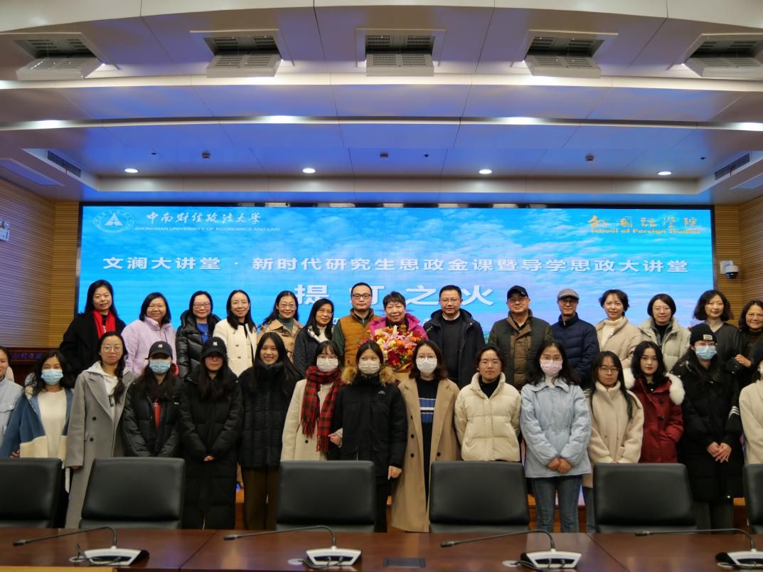 (通讯员 杨吉悦 陶欢雨)2023年12月14日下午,“文澜大讲堂”新时代研究生思政金课暨导学思政大讲堂在文澴楼同声传译会议中心举办。本次讲座以“提灯之火”为主题,邀请了外国语学院梁小华教授担任主讲人。讲座由学院党委书记陈亚奇主持,副院长袁奇、副书记王芹、学院导师代表和研究生辅导员出席讲座,2023级全体研究生到场聆听。