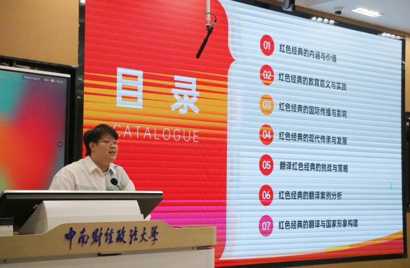 11月14日晚,研究生辅导员袁笑雨老师在文波智慧教室112以美国著名记者埃德加·斯诺的经典著作《红星照耀中国》为例,为大家带来题为“翻译红色经典,讲好中国故事”的培训课程。她讲述了红色经典的时代价值与国际传播的深远意义,特别强调在全球化日益加深的今天,红色经典不仅是连接过去与未来的桥梁,更是展现中国共产党光辉历程与中华民族伟大精神的重要载体。她号召肩负文化交流使命外院学子,要勇担红色经典的传播的责任,充分利用自身的语言优势,结合现代科技手段,如社交媒体、在线翻译平台等,不断创新传播方式,拓宽传播渠道,让世界听见更加真实、立体、全面的中国声音。