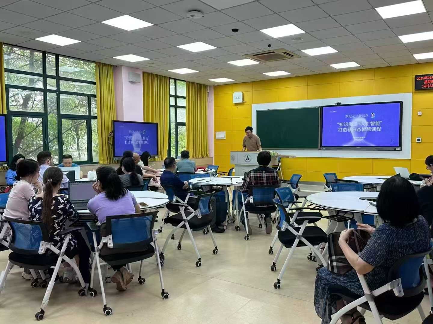工作坊中,智慧树网的金课咨询师李斯奇围绕智慧课程建设展开深度讲解、智慧树网知识图谱事业部高级产品经理向孝园结合丰富的实践案例,详细演示了如何利用智慧树平台实现线上线下混合式教学、智能化学情分析及个性化学习路径规划。在互动环节,老师们积极提问,就外语课程智慧化改造中遇到的难点进行探讨,现场气氛热烈。