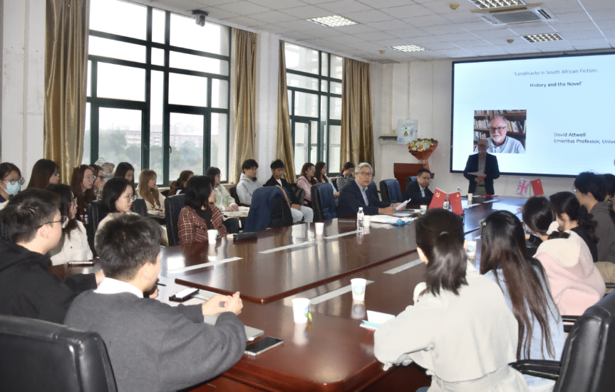 (通讯员 代偲 姚瑶 刘佳莹)2025年10月19日,英国约克大学教授、英国皇家英语学会院士David Attwell受邀来到外国语学院,他围绕“南非文学的里程碑:历史与小说”这一主题,为学院师生带来了一场兼具学术深度与实践指导意义的精彩讲座。外国语学院院长王娜、副院长袁奇、党委副书记秦小莉出席活动。讲座由蔡圣勤教授主持。