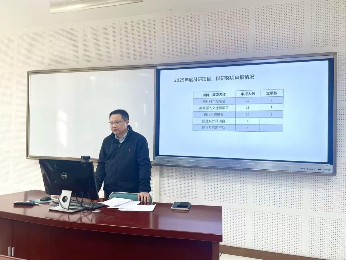 会议还重点传达了学校最新科研政策。针对科研经费使用,要求全院教师严格遵守规范;此外,学校已启动第十届教育部科学研究优秀成果奖申报工作,学院鼓励教师结合研究方向积极参与,力争产出高质量科研成果。