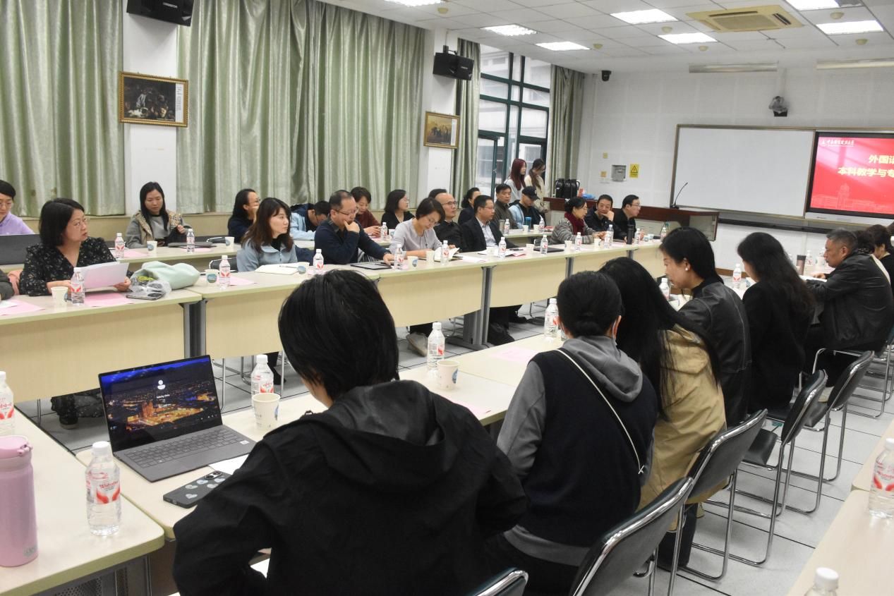 院网讯(通讯员:陈紫涵,图片:艾湘、林国香)为深入推进本科教学改革,促进专业建设高质量发展,外国语学院于2025年10月30日上午,在文波楼语音210教室举办本科教学与专业发展论坛。学院领导班子成员、大学英语部主任及副主任、各教研室主任与骨干教师、英语语言文学系与应用英语系全体教师、本科教学指导委员会委员以及全体教授参加本次论坛,论坛主持人为副院长阮全友。