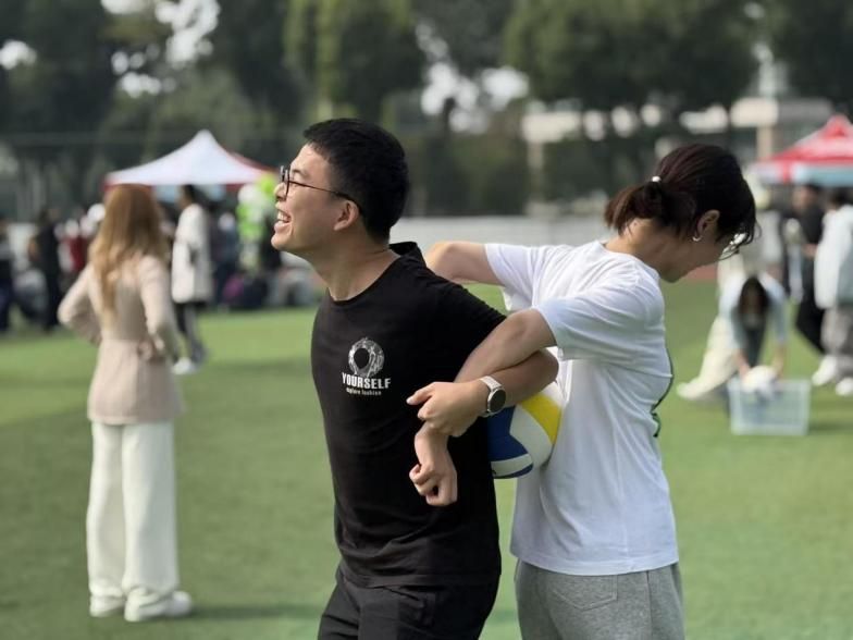作为此次活动的主要承办学院之一,外国语学院研究生会提前谋划、精心筹备,结合研究生群体运动需求与团队协作特点,设计并组织了兼具趣味性与竞技性的“步调一致:双人背靠背夹球跑”项目,充分展现了学院研会在研究生文体活动中的扎实组织能力与创新意识。活动现场,工作人员分工明确、协同高效,负责项目讲解、秩序维护与后勤保障等工作。从赛事流程梳理到应急物资准备,各环节衔接有序、保障有力,确保赛事顺利开展。