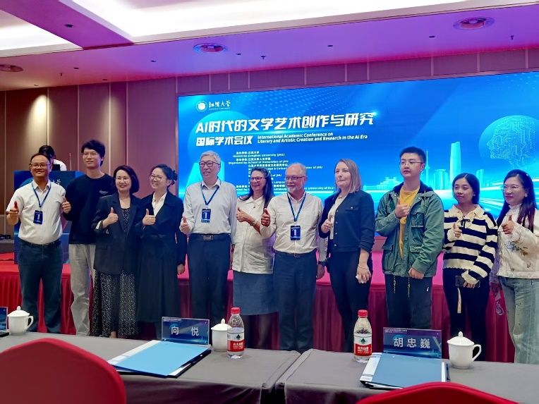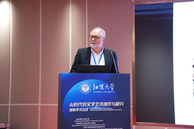 (通讯员 任飞羽)2025年10月17-19日,由江汉大学人文学院承办国际学术会议在武汉明德酒店成功举办。该国际学术会的主题是“AI时代的文学创作与研究”,来自国内外的100多名专家学者通过主旨发言和平行论坛以线上线下相结合的方式进行了学术探讨。我校文学团队参会并做了主旨发言。