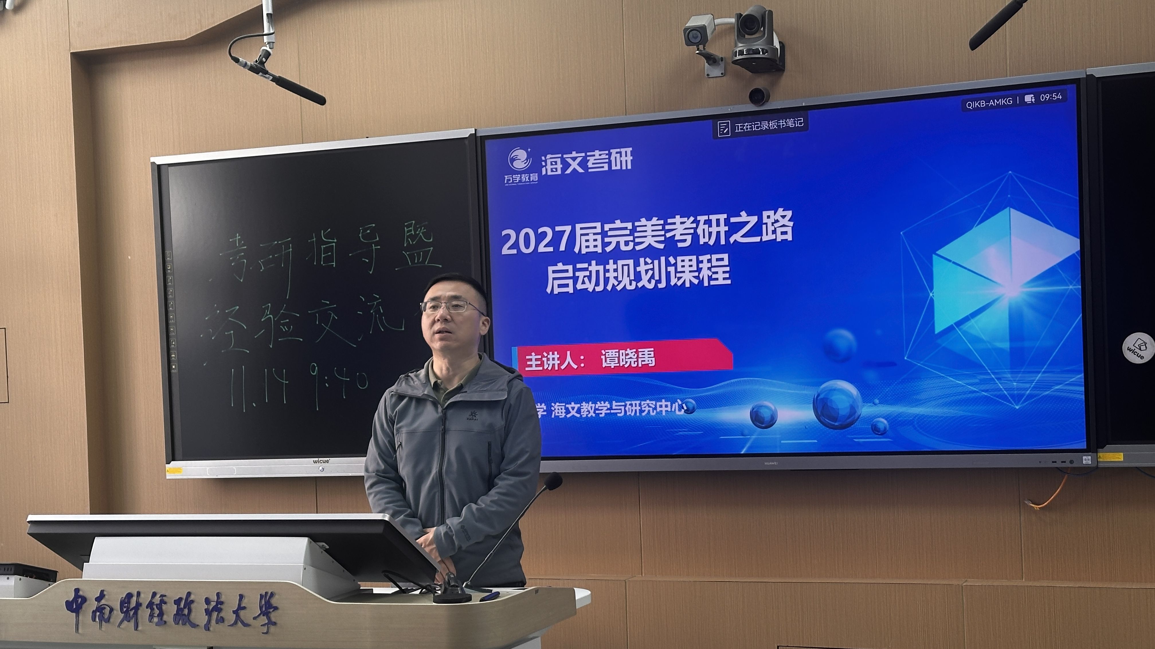 讲座紧密围绕我院全专业考研需求,特邀海文考研资深指导专家谭晓禹校长担任主讲,谭老师以“2027届完美考研之路启动规划课程”为主题,从院校专业选择、初试备考策略、核心考点梳理、考研国家线变化趋势等关键维度展开深入分享,为同学们破解备考困惑,搭建交流平台。